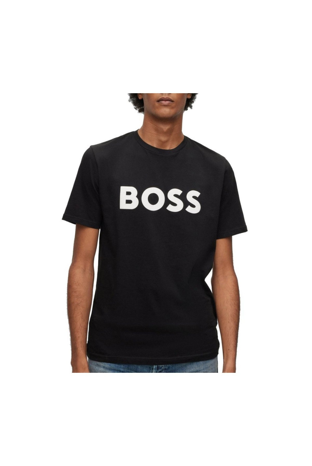La camiseta Boss Thinking presenta cuello redondo y un logo grande y llamativo en el pecho.