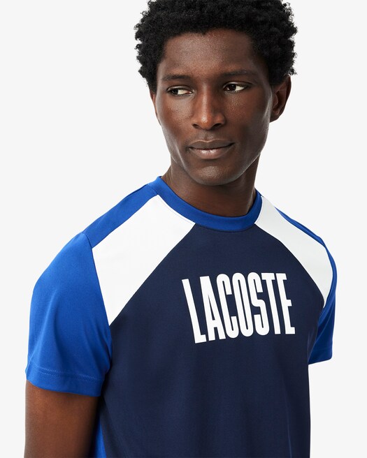 En la intersección de la moda y el deporte, esta camiseta es una fusión de los códigos de Lacoste. Diseñada en el icónico tejido Piqué, permite el movimiento y te mantiene seco gracias a las propiedades de la tecnología Ultra Dry. Sus características técnicas se complementan con un icónico diseño de bloques de color y un estampado característico, aportando estilo a cualquier terreno.